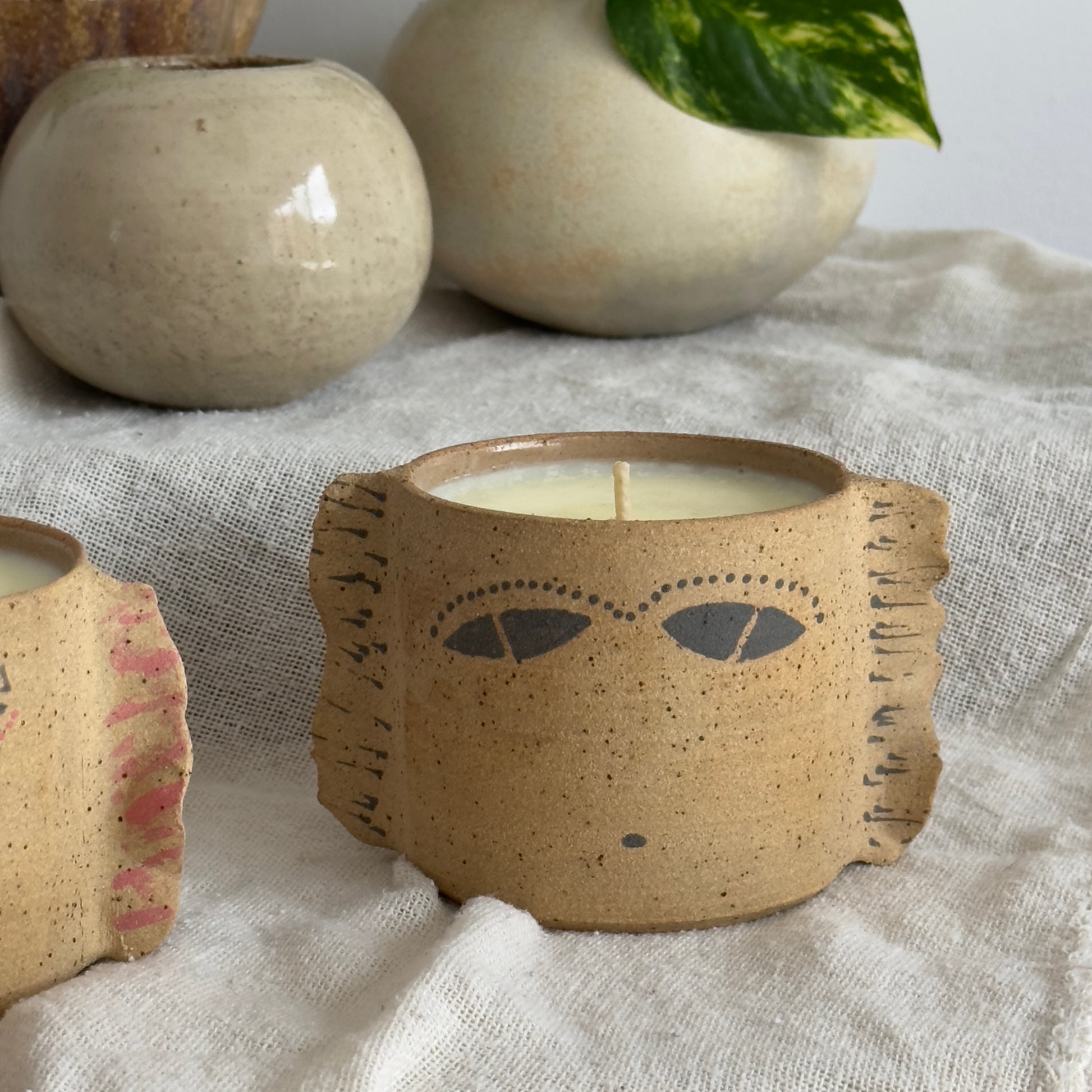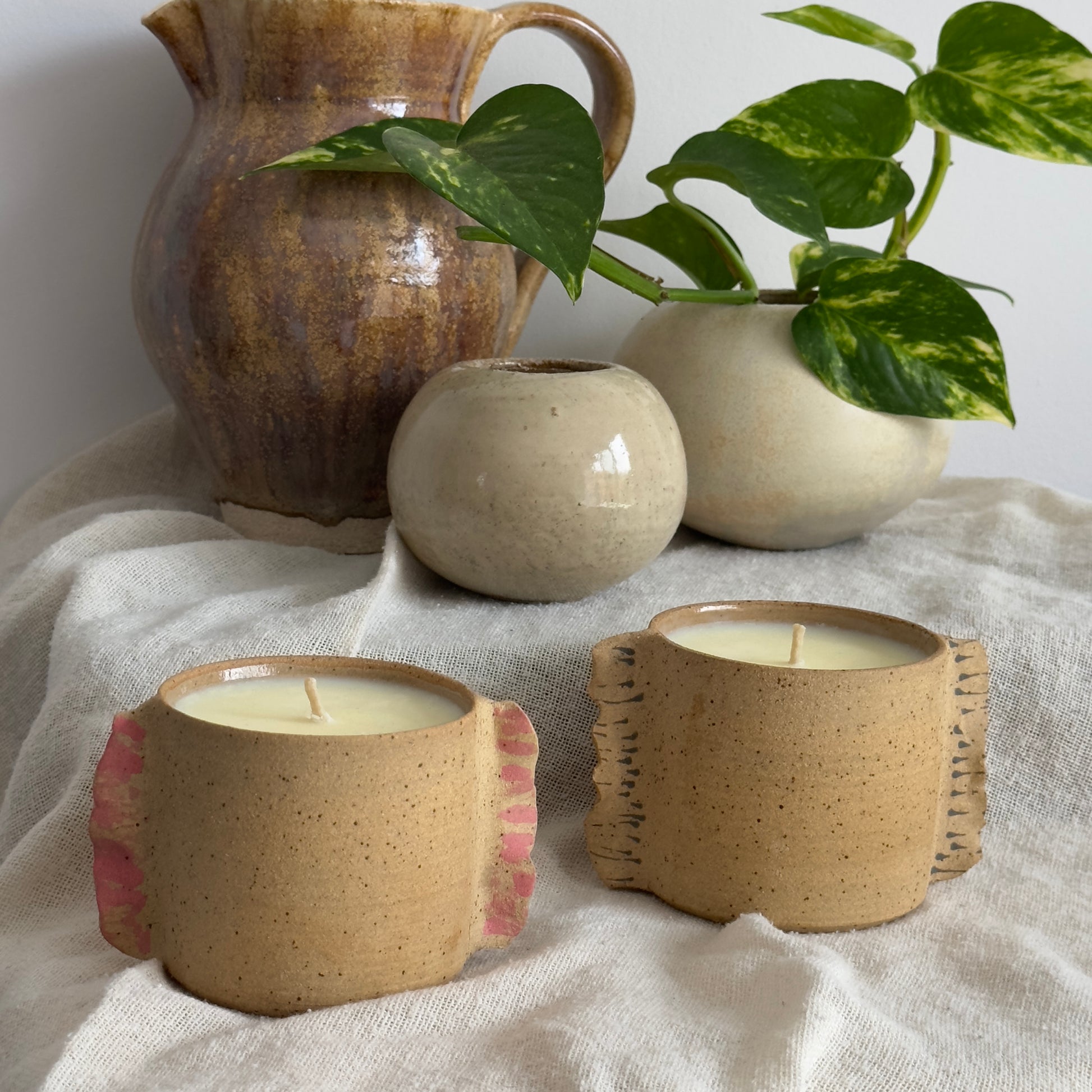 Handcrafted stoneware candles made with natural coconut soy wax and pure essential oils. Each vessel is wheel thrown, fired at 1220°C, and fully reusable as a mug once the candle is finished. Food, microwave, and dishwasher safe, a sustainable piece of art that keeps giving.